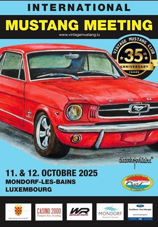 Samstag, 11. & Sonntag, 12.10.2025 5601 Mondorf-les-Bains (LUX) Info: www.vintagemustang.lu